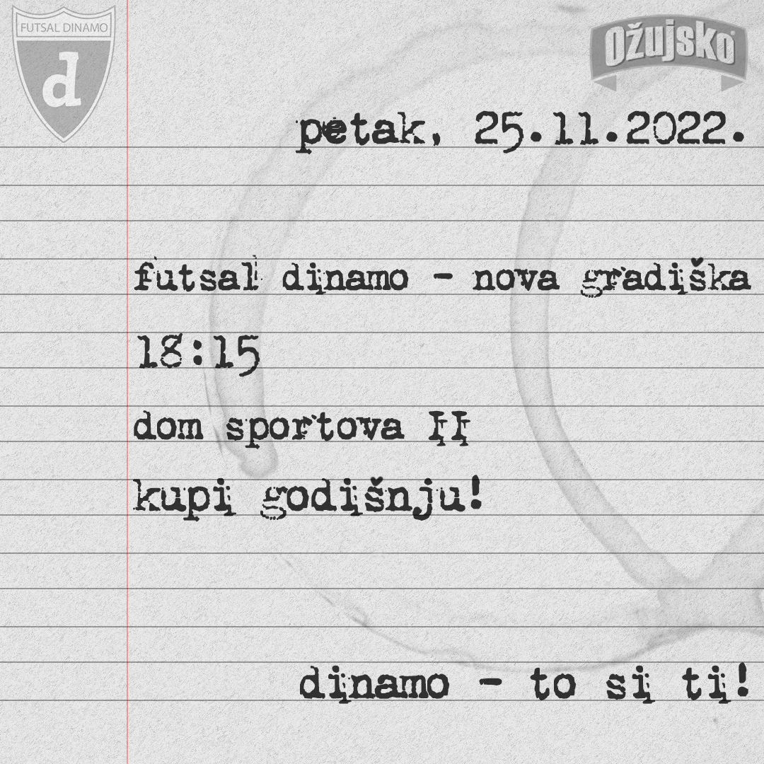 25.11. Futsal Dinamo – Nova Gradiška, 18.15 (osmina finala Kupa)