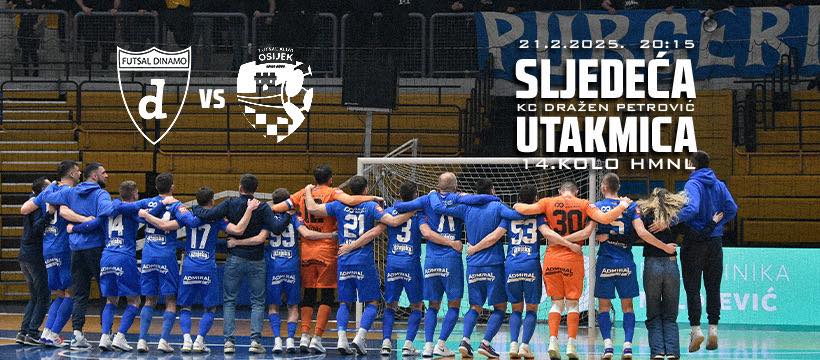 Utakmica 14. kola HMNL između Futsal Dinama i Osijeka na rasporedu je u petak, 21. veljače u 20:15 u KC Dražen Petrović.