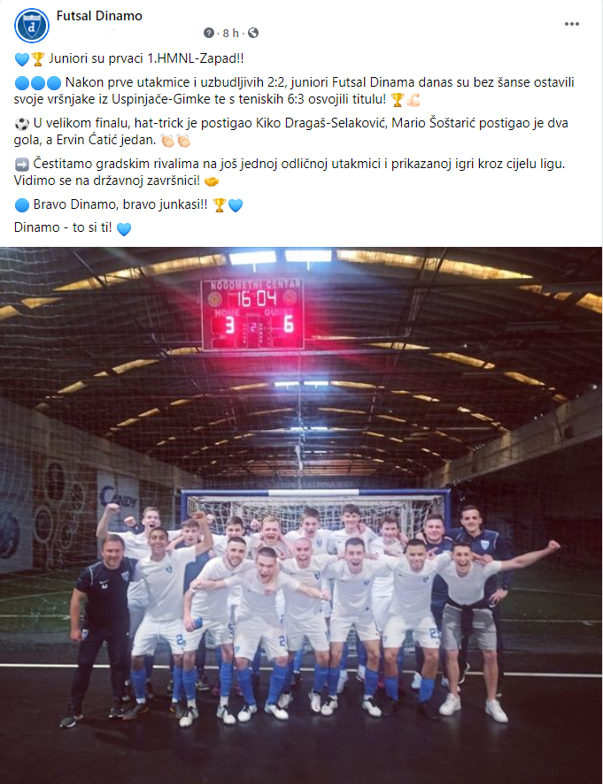 Pred Dinamovim juniorima sada je nacionalno prvenstvo koje se prošle godine nažalost nije održalo (na neslužbenoj završnici, u suorganizaciji Gimke i Aurelije, završili smo drugi).